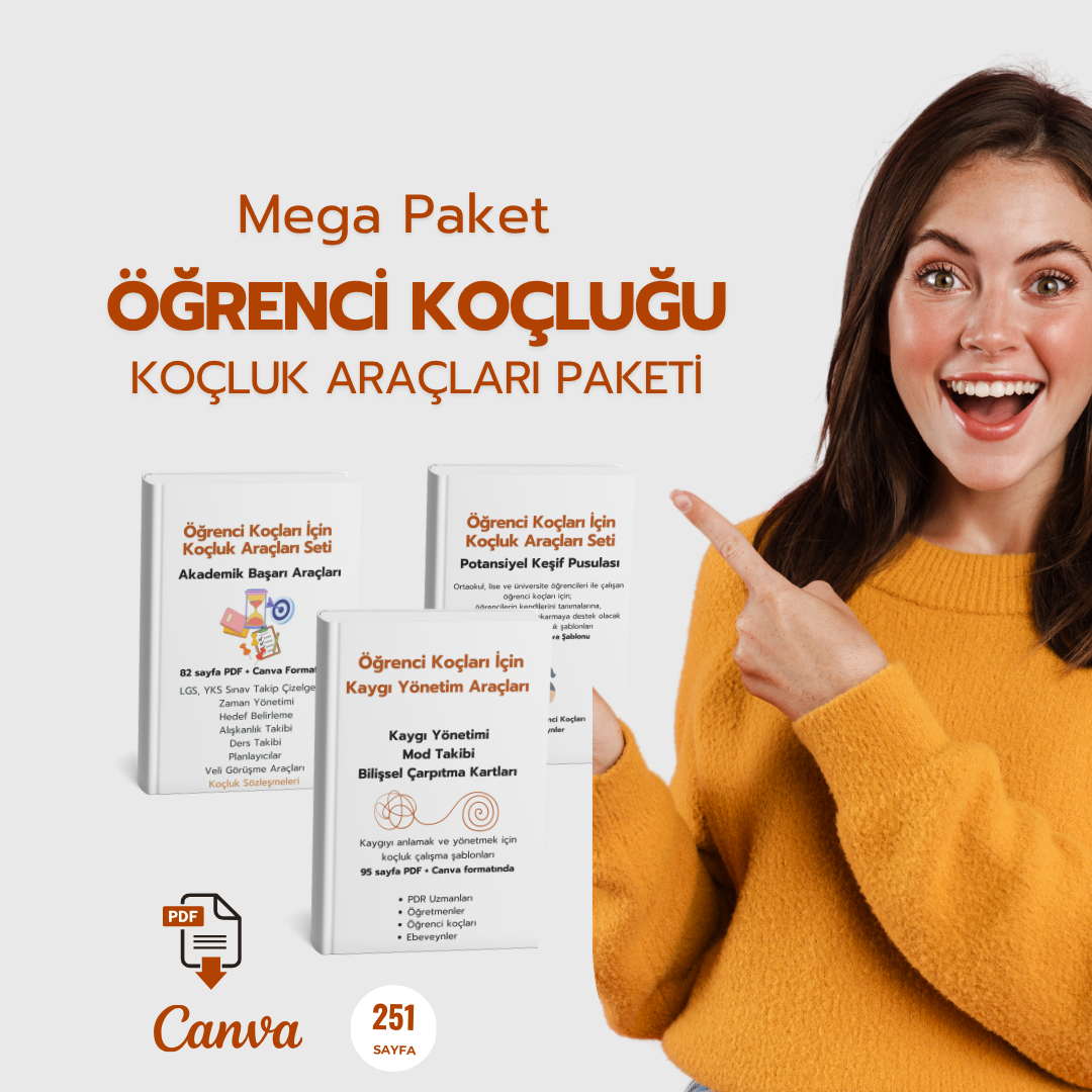 Mega Koçluk Paketi (Canva Şablonu + PDF), Koçluk Araçları Seti, Profesyonel Koçluk, İşletme Koçluğu, Yönetici Koçluğu, İlişki Koçluğu, Kariyer Koçluğu, Kendine Koçluk